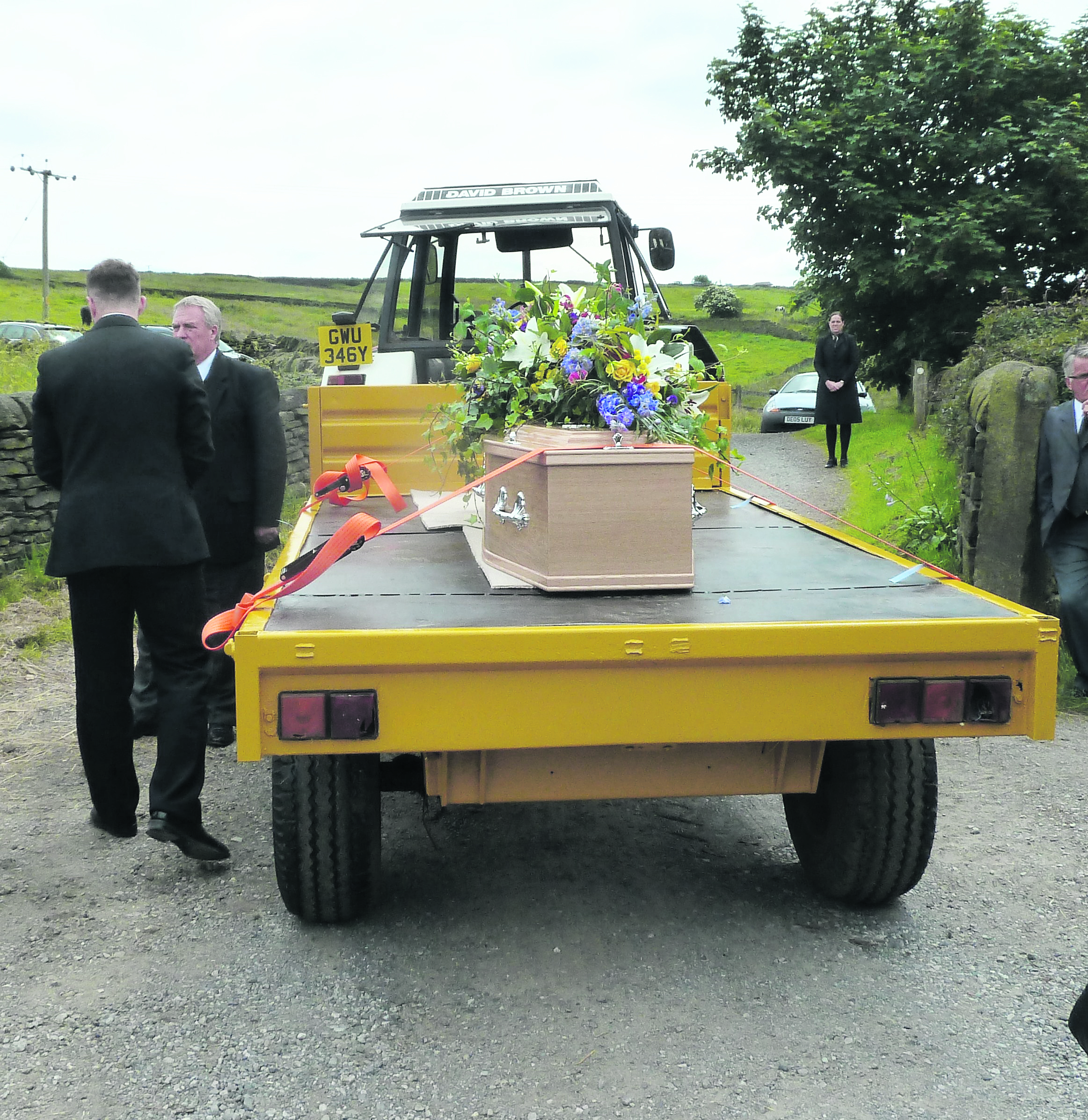 His flower-decked coffin, cradled on a bright yellow trailer and towed by his favourite tractor, trundled down the long and winding lane to his farmhouse home.