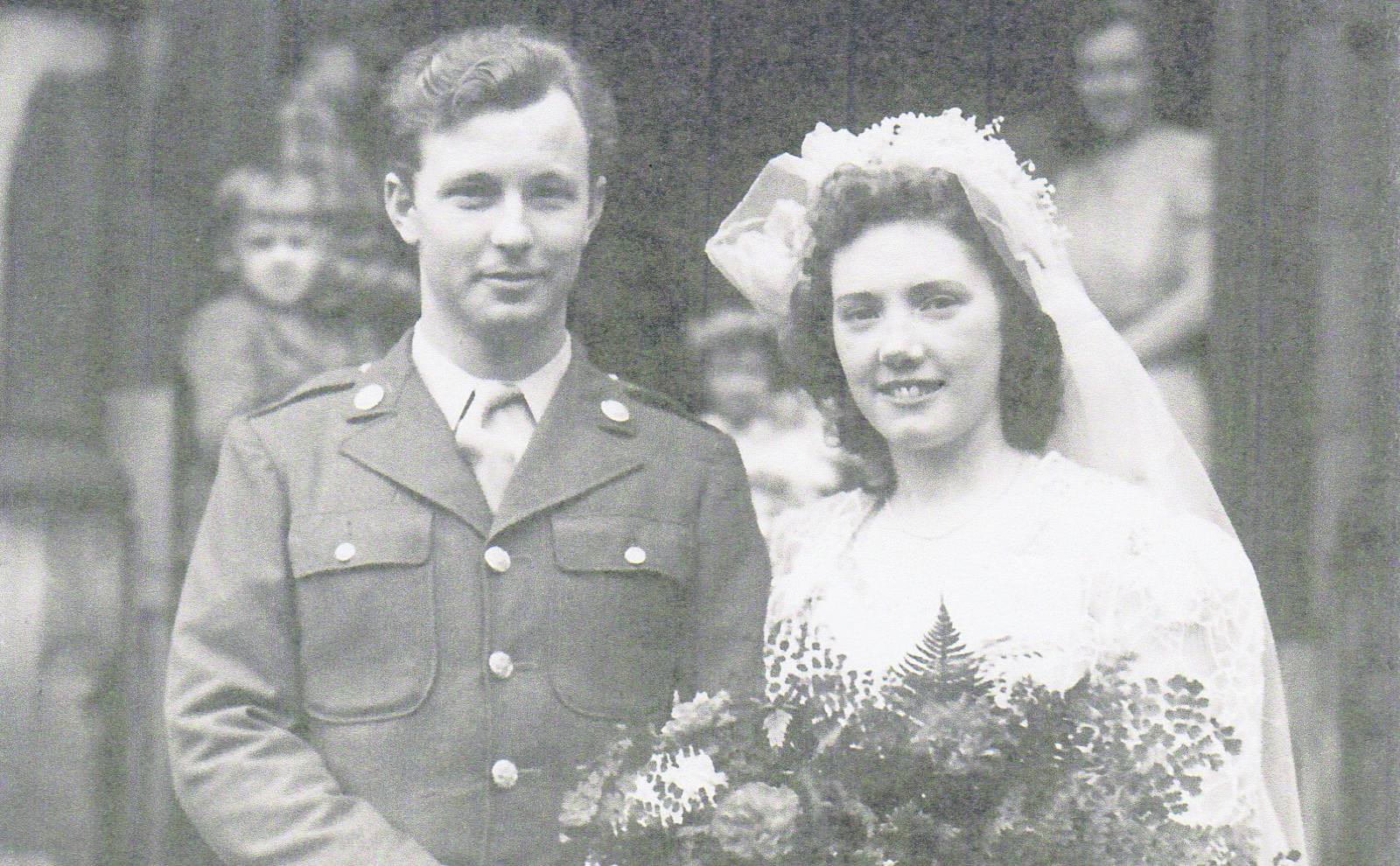 “My American grandpa James Elton Lanier was stationed in England during WWII and they met during my grandma’s volunteer work with the Women’s Land Army and married at Greenfield Methodist Church in 1944.