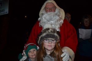 Then villagers went to St Anne’s church hall for refreshments and to meet Father Christmas, who had swapped his sleigh for a shiny red convertible for the evening.