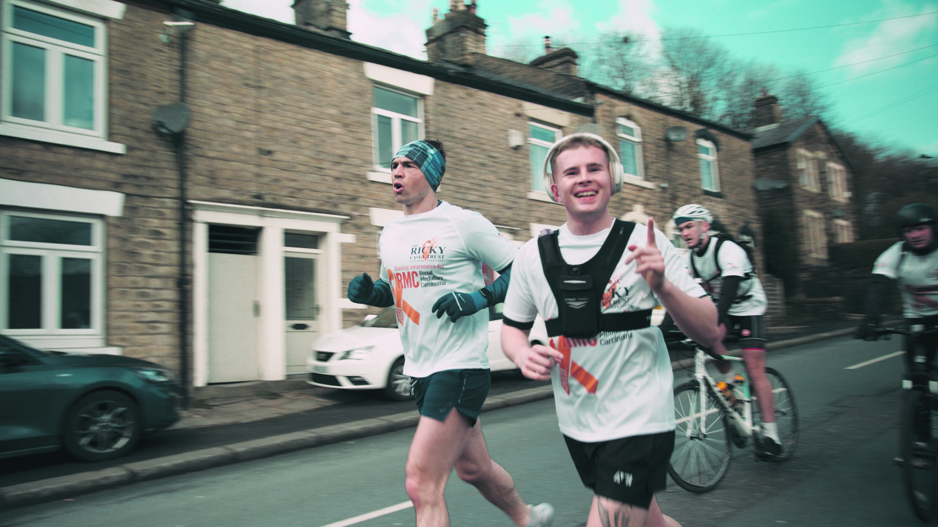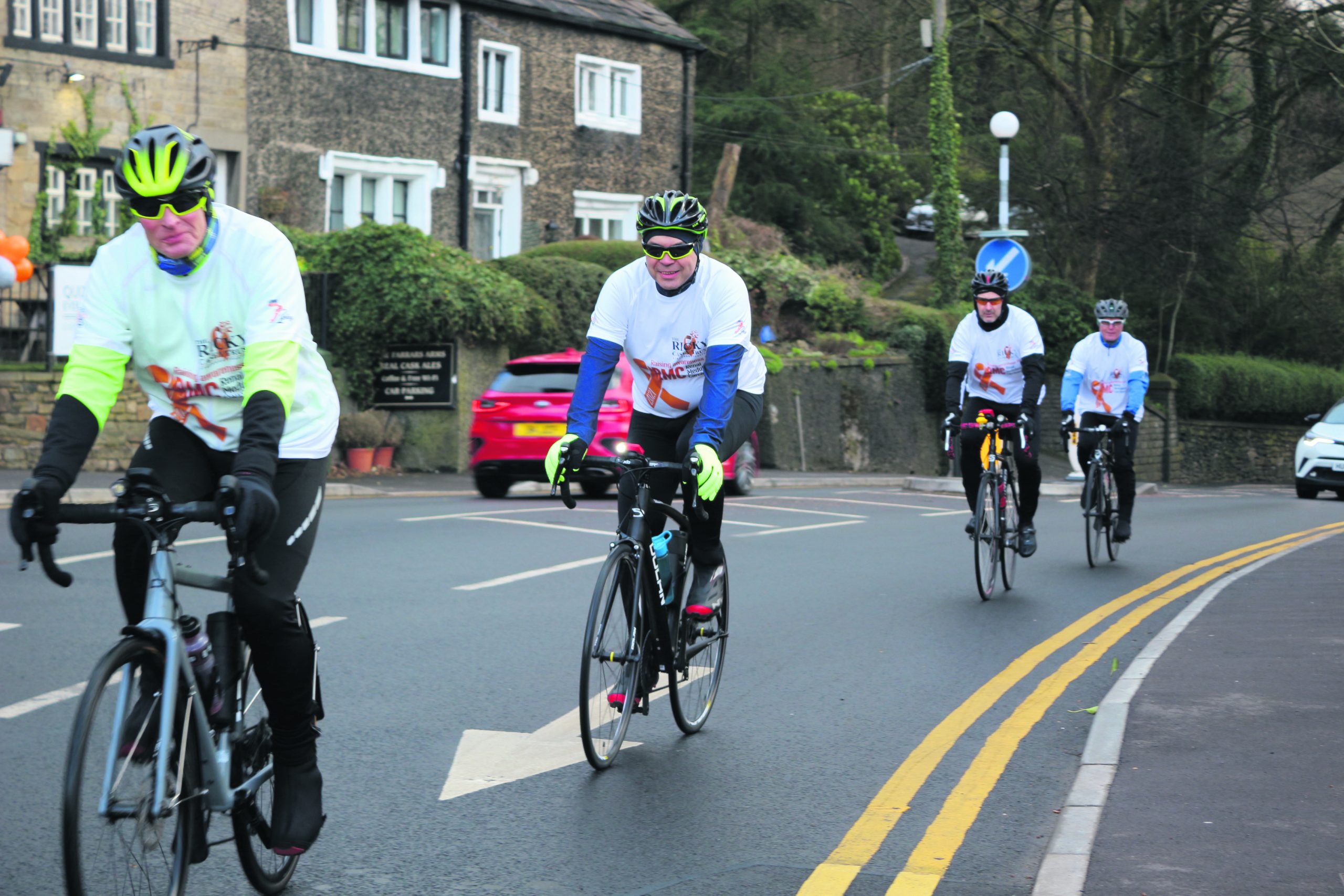 Ellis was joined by friends Finlay Scott, Will Cottom and Declan Devowski who cycled alongside him while a team of 20 cyclists who were pedalling 51 miles on the same route around Saddleworth that he was running.