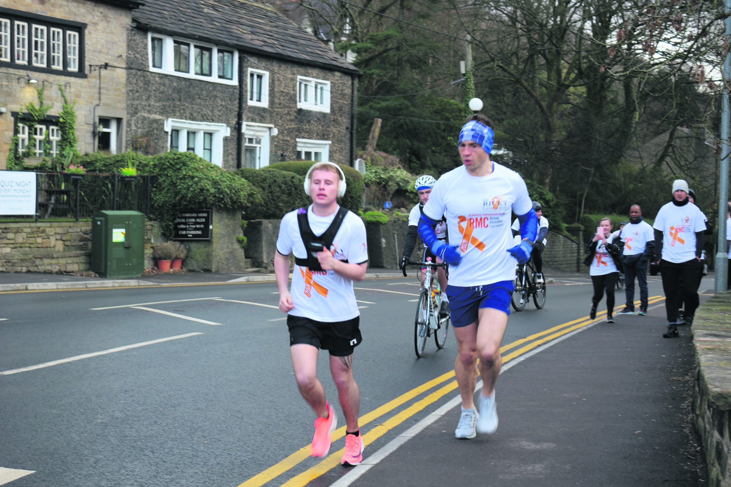 Rugby league legend Kevin Sinfield, who ran 51 miles in memory of his friend Ricky, also joined Ellis for the first 10K of his marathon which started from The Farrars Arms while five friends also ran with him at various stages to provide support.