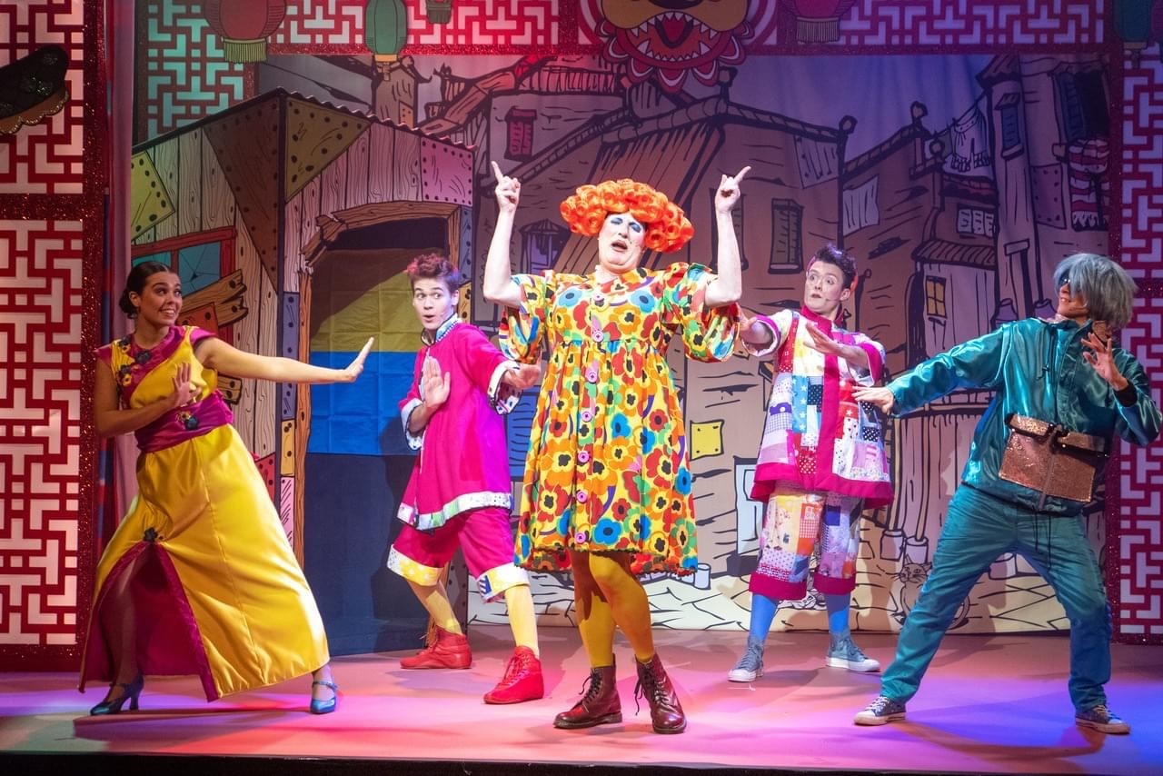 The show starts with a bang. We meet Aladdin (Michael Pellman) and Wishee-Washee (Will Cousins) in the Peking market dancing with the show’s hilarious policemen PC World (Sarah-Louise Young) and Sergeant Pepper (Tessa Vale).