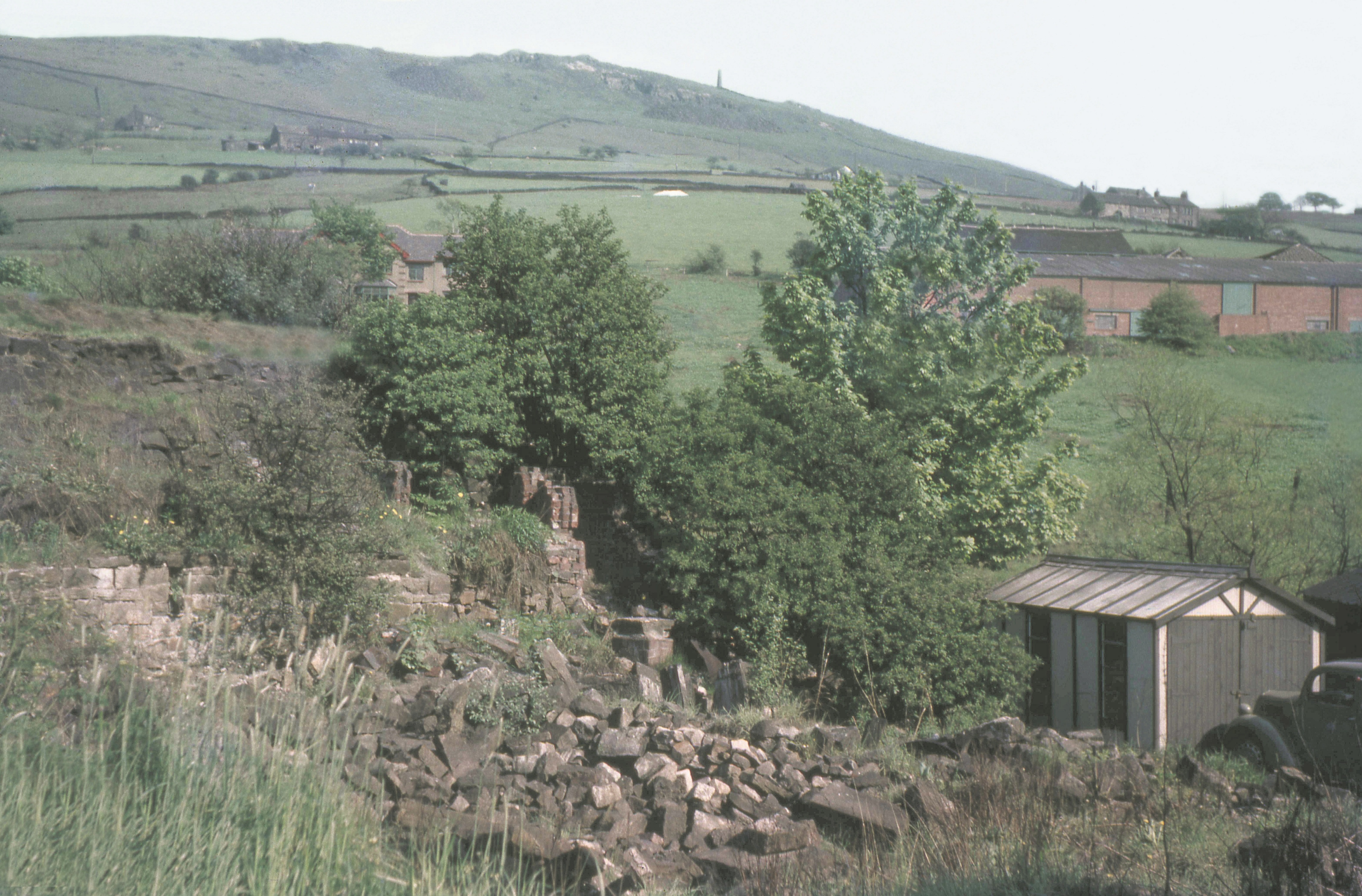 Fifty years separates these two views of the remains of Heathfields Mill, Uppermill. The first upper view taken by my father c1959 records the mill as it was then and for us as children a big play area as we lived in the adjacent cottages. The modern view taken this year shows that changes are in hand and we wonder what the scene will look like in even a few years.