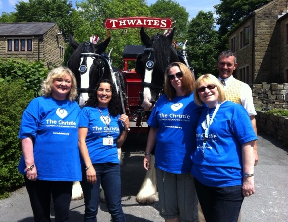 Because an event, backed by a pair of famous brewery dray horses, helped the Christie Allsorts raise £422 at the White Lion in Delph.